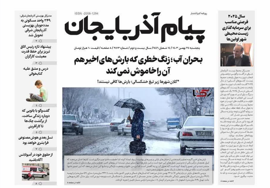 روزنامه پیام آذربایجان شماره ۲۵۱۳